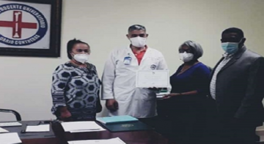 El reconocimiento fue entregado por la doctora Iraima Serrano, directora del Área II del Ministerio de Salud en Santo Domingo Este, por el gran trabajo realizado por el doctor Aponte Pons, juntos a con el personal médico y de enfermería en la lucha contra el coronavirus.