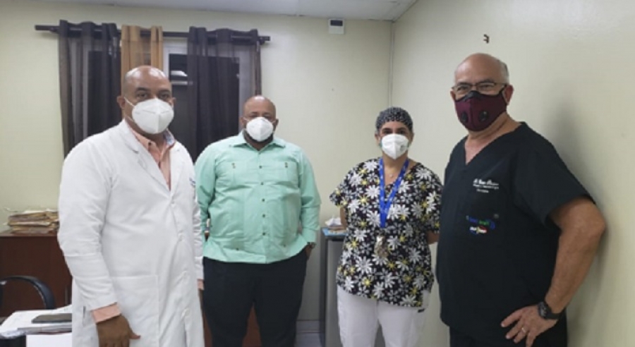 En la imagen figuran de izquierda a derecha; Dr. Enmanuel Silverio, Lic. José Candelario (administrador), Dra. Francisca Moronta, encargada unidad de Covid-19 del referido hospital.
